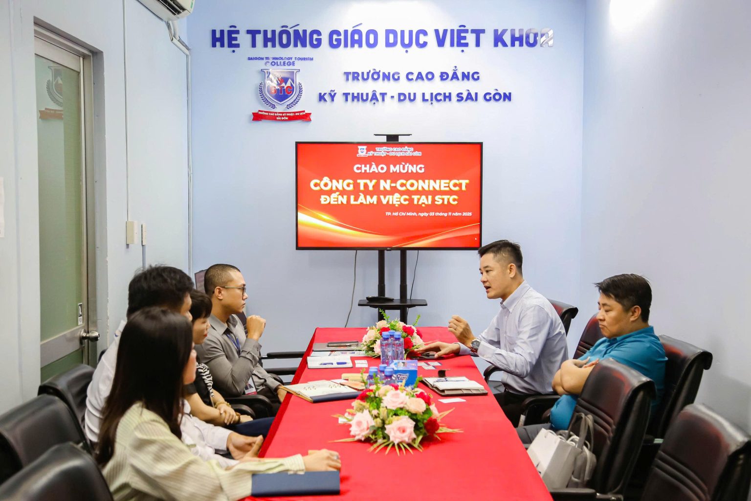Tiếp tục mở rộng mạng lưới hợp tác doanh nghiệp, sáng ngày 03/11/2025, trường Cao đẳng Kỹ thuật – Du lịch Sài Gòn đã có buổi tiếp đón và làm việc với Công ty Cổ phần N-Connect – doanh nghiệp uy tín trong lĩnh vực đào tạo, kết nối việc làm quốc tế.