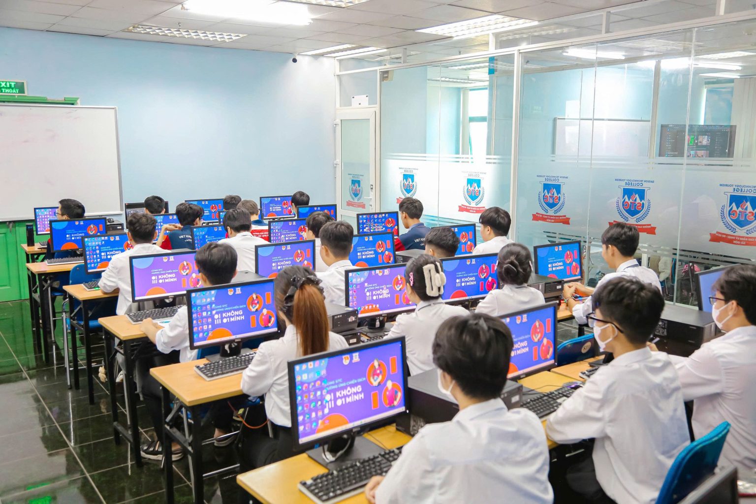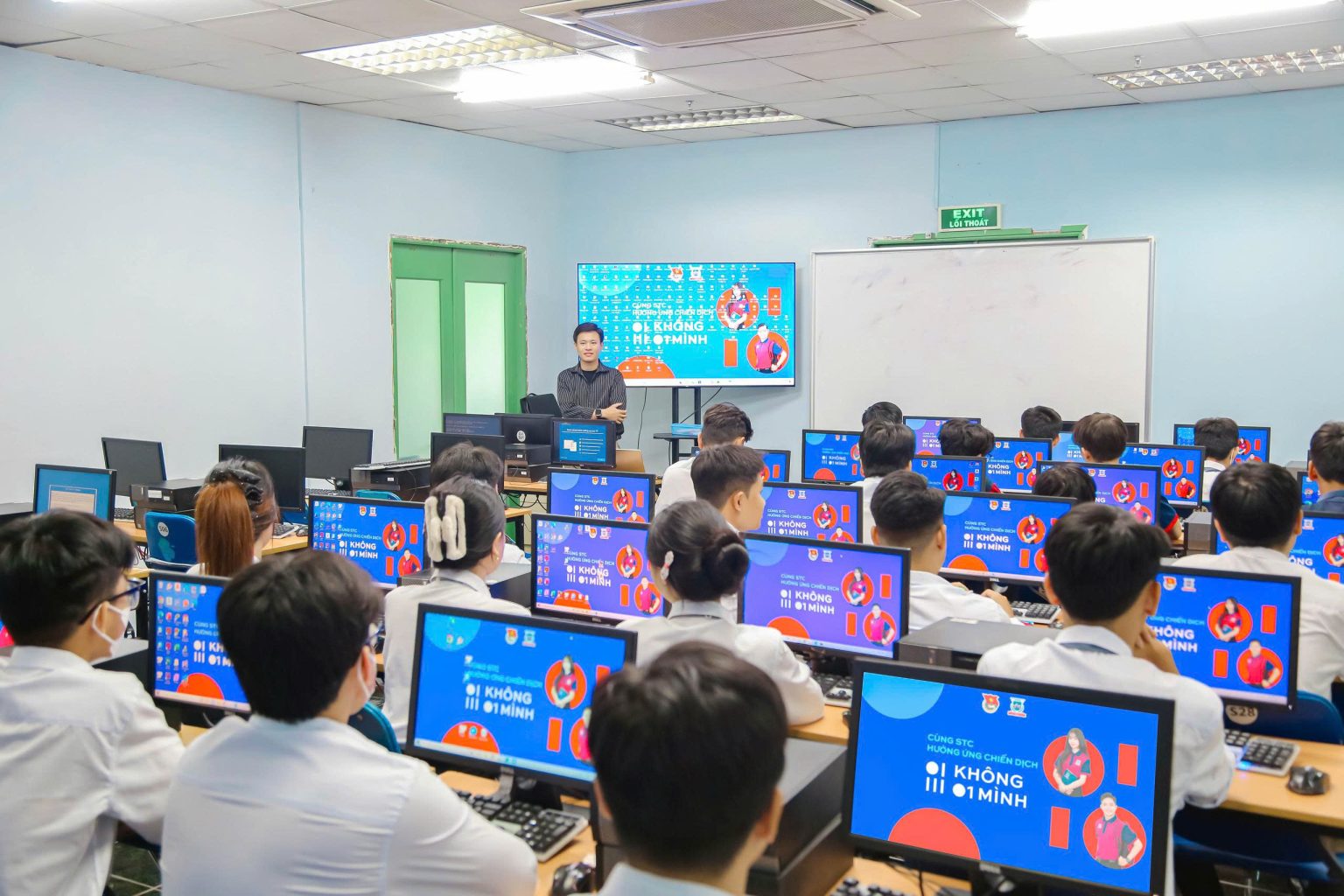 Sinh viên STC đồng loạt thay màn hình máy tính trong giờ thực hành hưởng ứng chiến dịch “Không một mình – Cùng nhau an toàn trực tuyến”